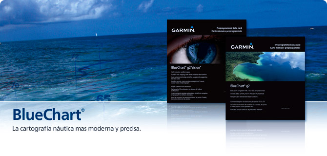 La exclusiva cartografía náutica BlueChart® de Garmin, se asemeja a las cartas de papel tradicionales al ser visualizada en un plotter compatible. Algunas de sus características principales son: fácil identificación de zonas de distintas profundidades, puntos de sondeo, ayudas a la navegación, portulanos, obstrucciones, naufragios, zonas de aguas poco profundas, áreas restringidas y mucho más.