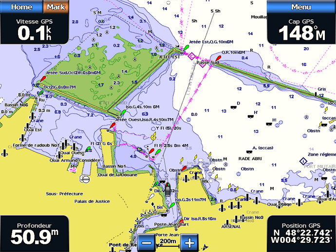 La cartografía BlueChart® está orientada al objeto, lo que significa que puede seleccionar y ver instantáneamente toda la información relacionada con el punto requerido.