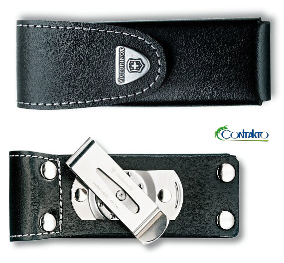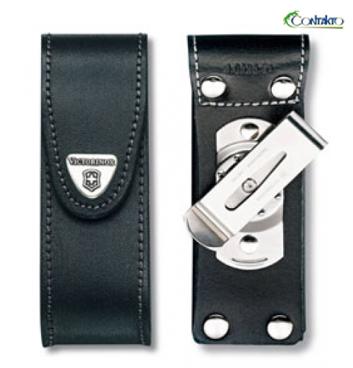 Funda de piel en color negro, con cierre de velcro y clip rotativo, de la firma Victorinox modelo 40523.31 para modelos 0.87 / 0.89 y SwissTool.