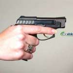 Pero a diferencia de la Beretta, anteriomente citada,la pistola Taurus Mod. PT-22,emplea el mecanismo de «solo doble acción».